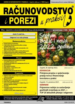 Pred Vama je novi broj časopisa Računovodstvo i porezi u praksi br. 12/2021.